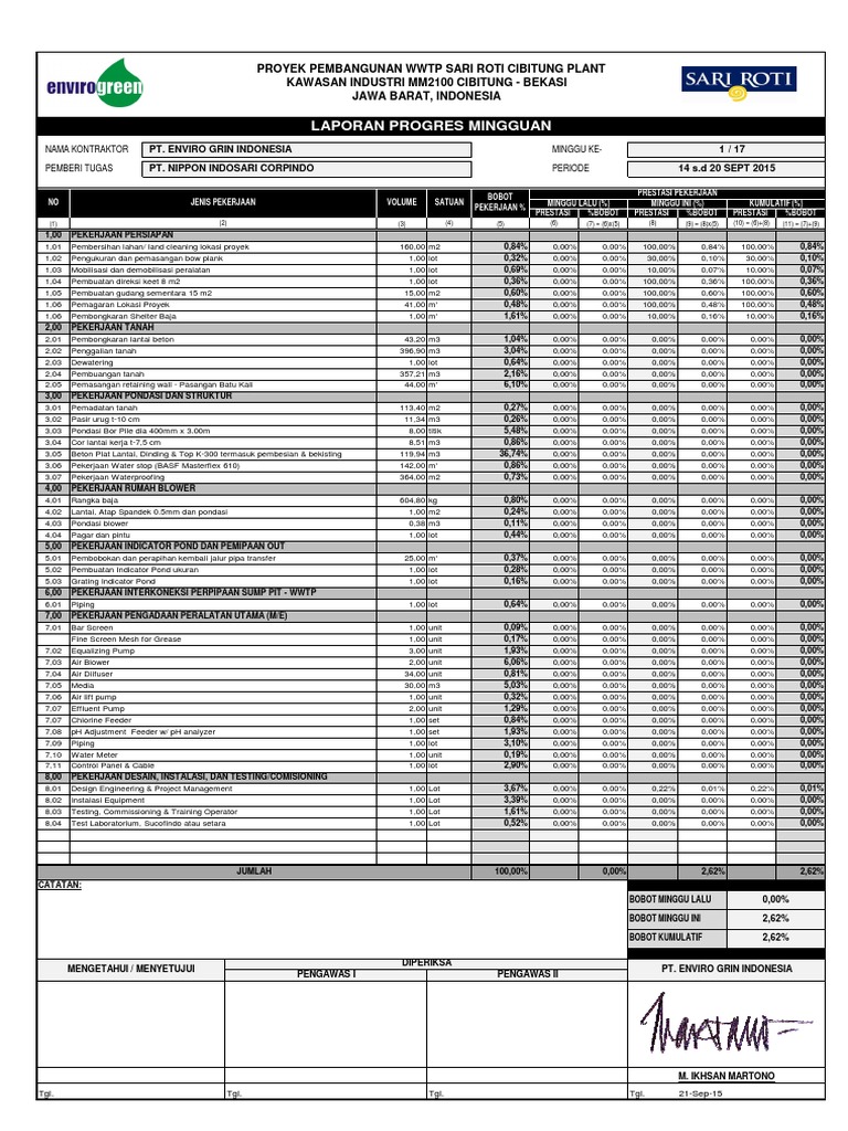 Laporan Progress Mingguan Proyek Wwtp Sari Roti Month 1