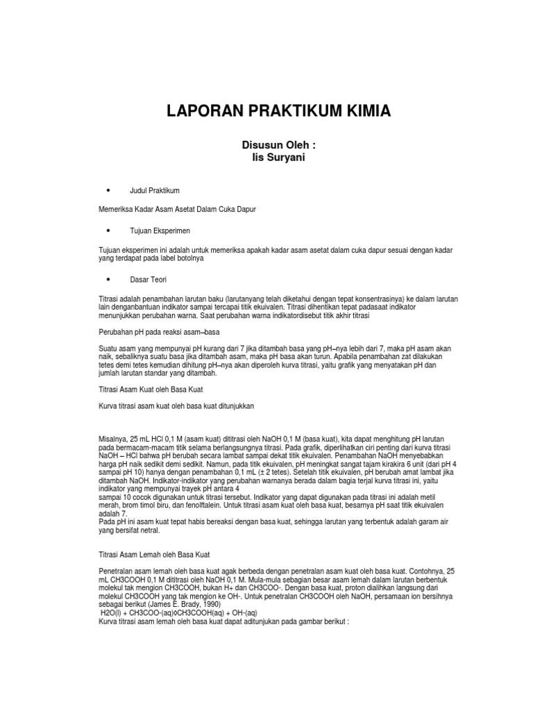 Contoh Laporan Praktikum Kimia Dasar Pdf