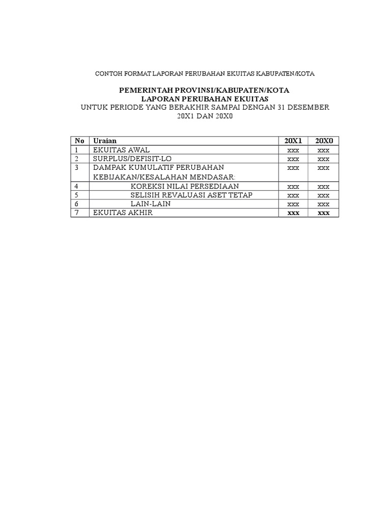 6 Contoh Format Laporan Perubahan Ekuitas Pemerintah Pusat
