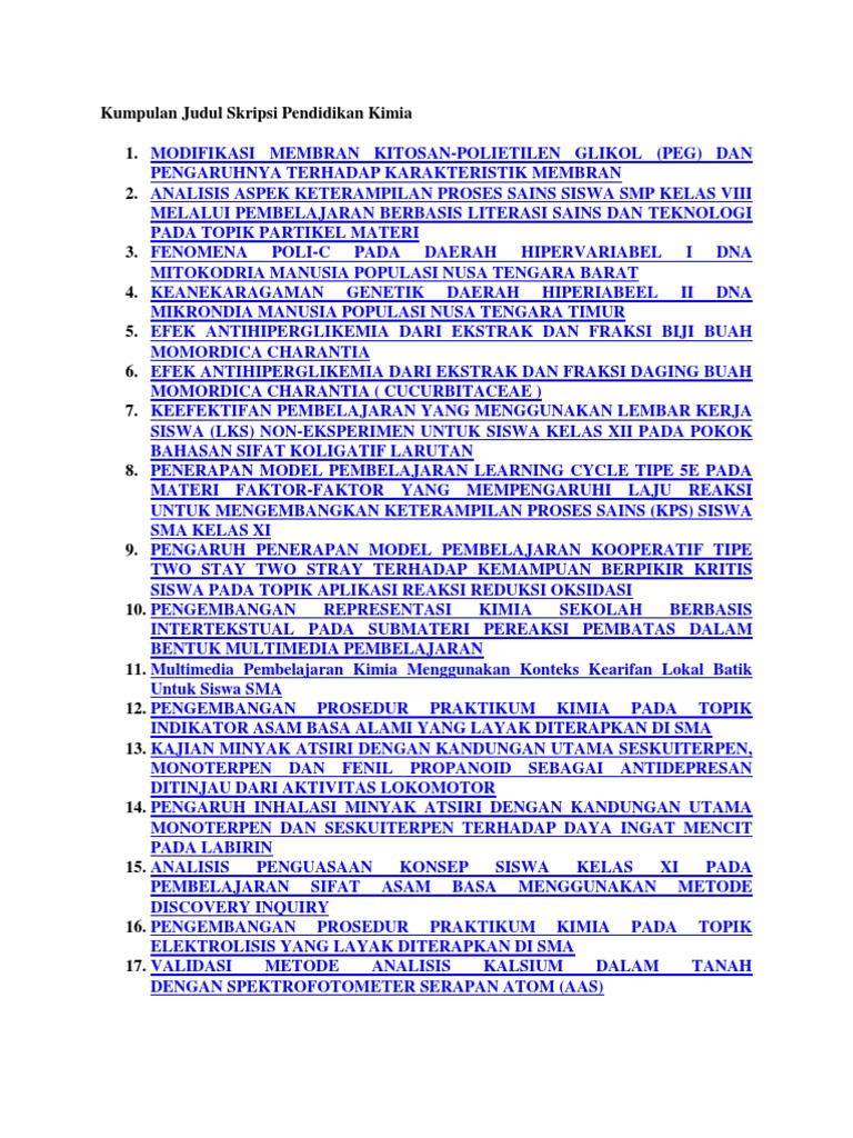 Kumpulan Judul Skripsi Pendidikan Kimia Docx