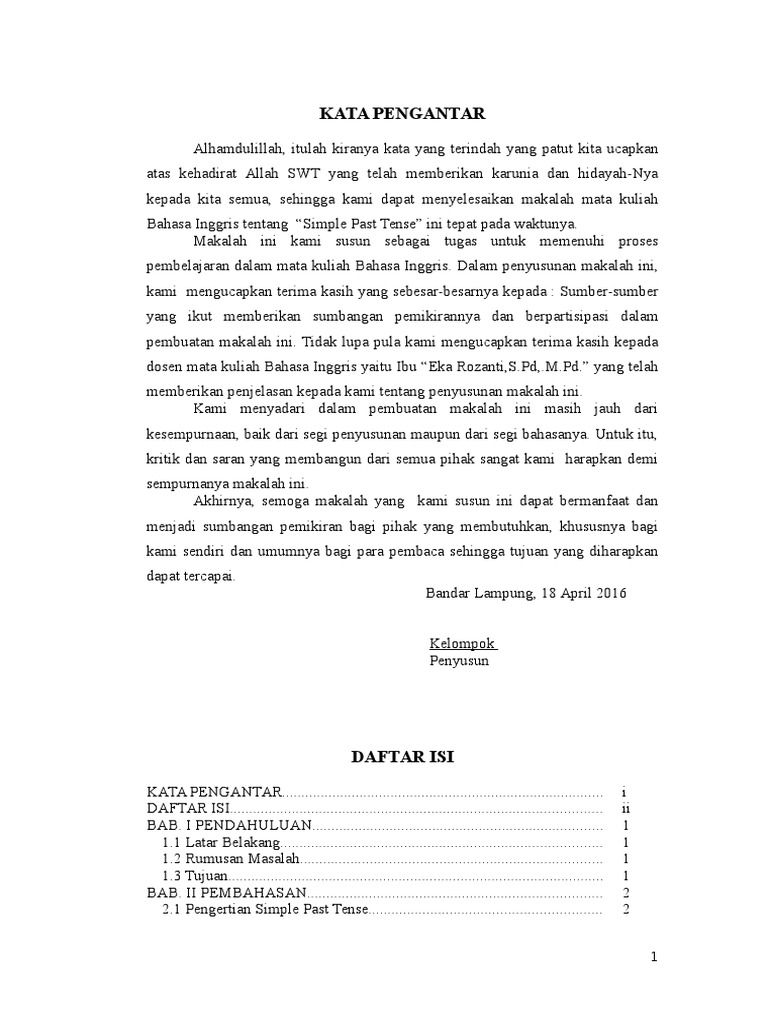 Contoh Makalah Simple Past Tense Dalam Bahasa Inggris Barisan Contoh