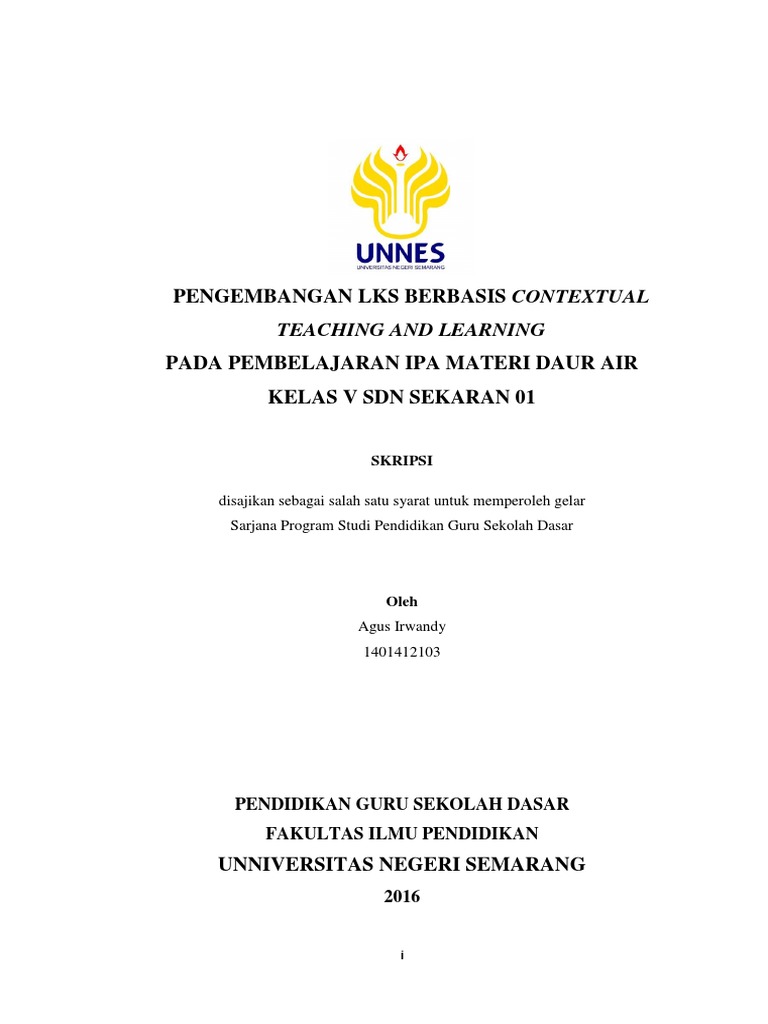 Koordinator PGSD UPP Tegal Fakultas Ilmu Pendidikan Universitas Negeri Semarang. Prosedur Pendaftaran dan Pelaksanaan Ujian Proposal Skripsi dan Ujian Skripsi Online. I penerapan model quantum teaching untuk meningkatkan kemampuan belajar ipa tentang gaya bagi siswa kelas iv sdn karangasem iv laweyan surakarta tahun 2012 skripsi disusun oleh.