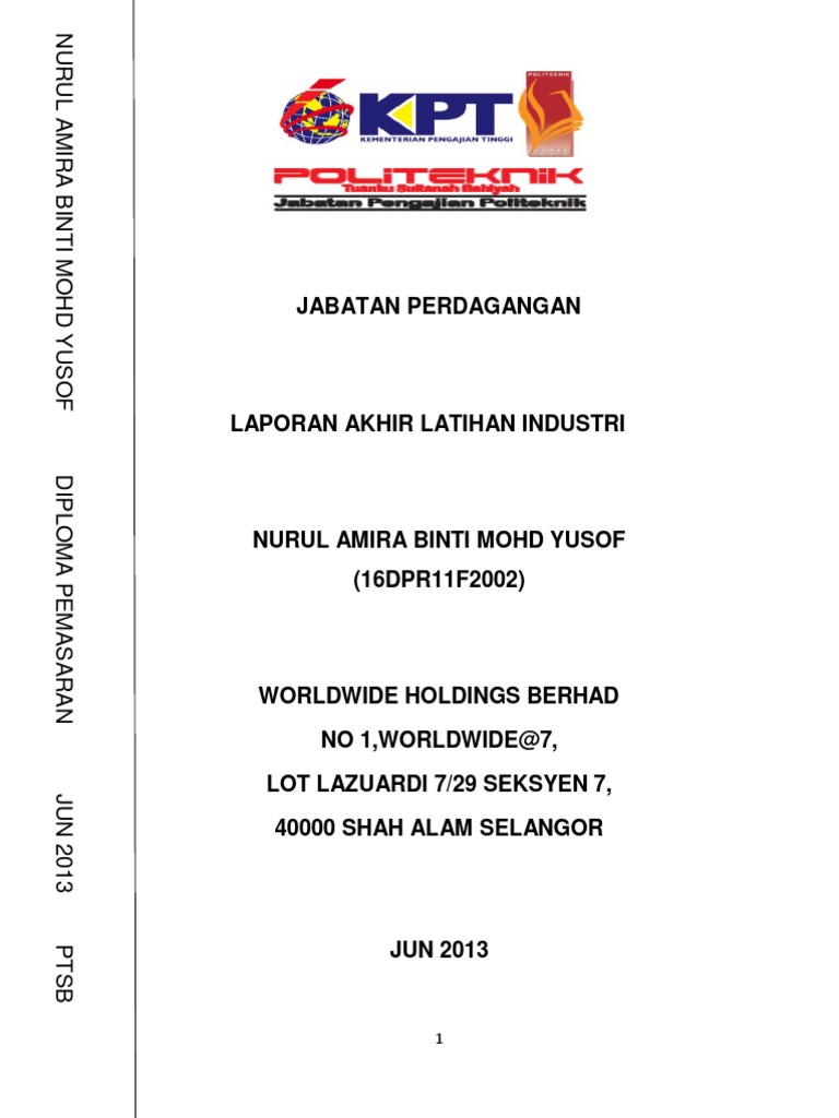 Contoh laporan akhir latihan industri politeknik jtmk. Digalakkan untuk e-mel salinan Laporan Akhir Latihan Industri kepada panel penilai sebelum pelajar mendaftar tamat LI bagi bacaan awal panel penilai. Hal ini bagi memenuhi keperluan pelajar untuk dianugerah dengan kelayakan diploma dari Kemeneterian Pendidikan Malaysia dan Jabatan Pengajian Politeknik. Report Latihan Industri Politeknik Bab 1.