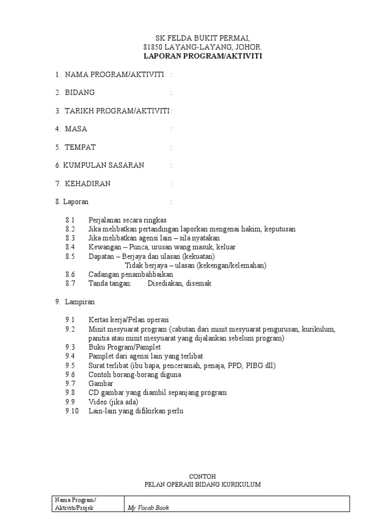 Biasanya panitia saya hanya isi borang borang tersebut secara bertulis tangan sahaja kecuali ada. PK013 FORMAT LAPORAN PROGRAM. Laporan panitia cikgu jumrah.