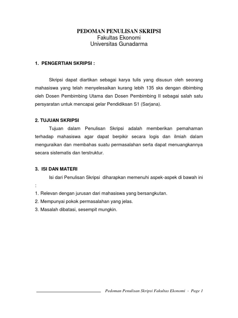Pedoman Penulisan Skripsi Prodi Manajemen FE - Page 1 PEDOMAN PENULISAN SKRIPSI. Sekian yang dapat admin bagikan terkait format penulisan skripsi sistem informasi gunadarma.